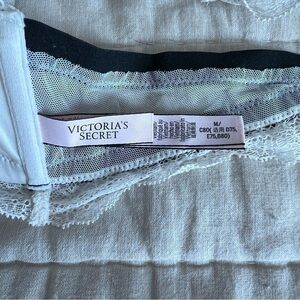 Victoria’s Secret white lace triangle bralette with black believer straps and trim. Removable cups. Material as shown in photos. Size medium