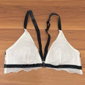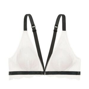 Victoria’s Secret White Chantilly Lace Front Close Velvet Trims Bralette Size L