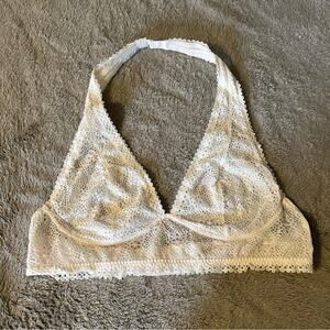 Victoria’s Secret White Lace Bralette Halter Plunge Style Size Large