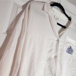 Victorias Secret Whitw Satin Feel Button Up Logo Sleep Top Approximately 24in pit to pit 28in length