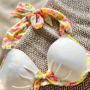 Victoria’s Secret White/Floral Tie Swim Top 32D