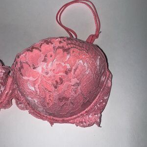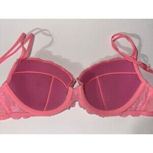 Victoria's Secret Women Bra 32D Pink Lightly Lined Demi Lace Underwire