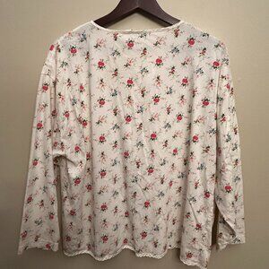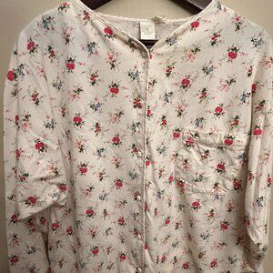Victoria's Secret Women Pajama Button Up Top Long Sleeve Red Roses Size Medium