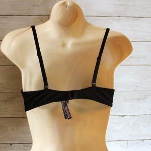 This underwire bra is labeled perfect coverage. It is solid black with light padding. The straps are adjustable and may be worn as cross over straps. It is in very good to excellent condition with very slight signs of use.