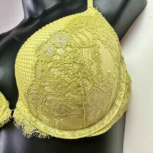 Victoria's Secret Women's 34C Very Sexy Push Up Bra Bright Green Shimmery Lace