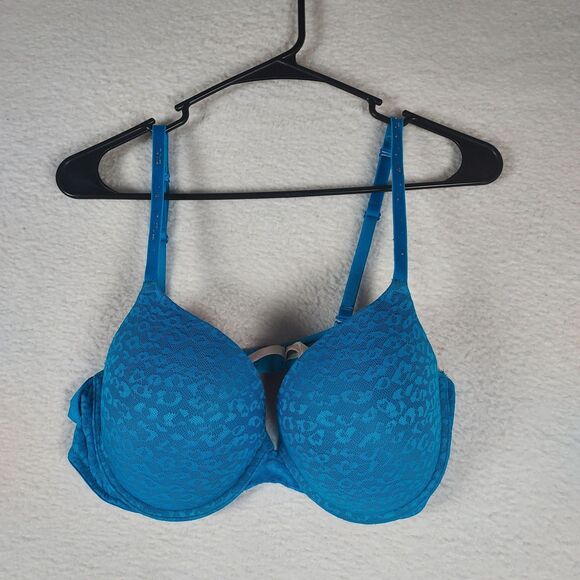 Victoria’s Secret Womens 36D Blue Lace Padded Underwire Bra Adjustable Straps