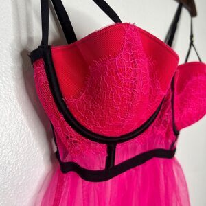 Victoria’s Secret Women’s Babydoll 34C Hot Pink Sheer Lace Lingerie Bra NEW