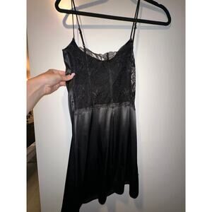 Victoria’s Secret Womens Black Satin/lace Babydoll Mini Slip Dress Size XS