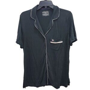 Victoria's Secret Women's Black White Trim Modal Blend Button Up Pocket PJ Top M