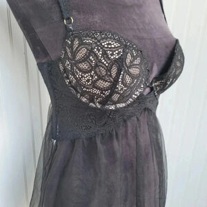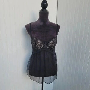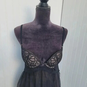 Victoria’s Secret Womens Bra 34C Black Lace Push Up Babydoll Top Mesh Split Slip