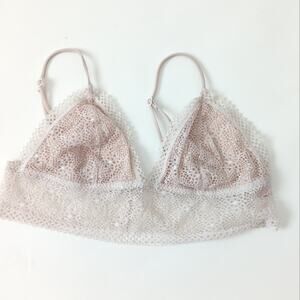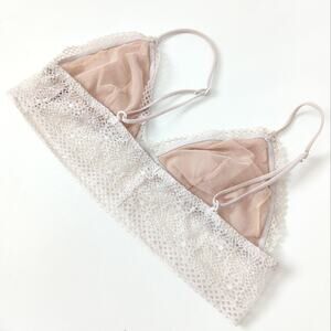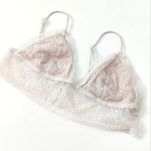 Victoria's Secret Womens Cream Lace Bralette Medium V-neck Mesh Sexy Bra Boho
