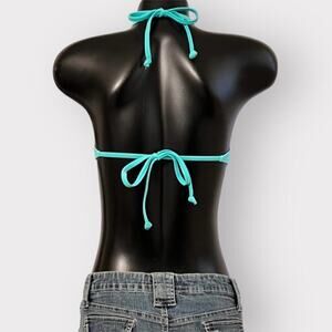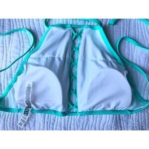 Victoria's Secret Womens High Neck Swim Top sz XS Teal Green Mock Lace Up Chest