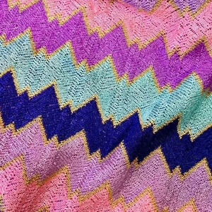 - Pink, purple, turquoise, and navy blue chevron stripes with metallic sheen
