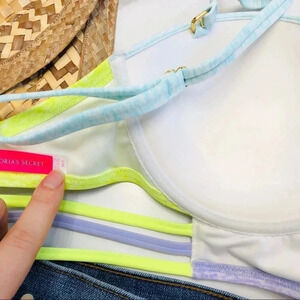Victorias Secret Women’s Neon Colorblock Midi Longline Push-up Bikini Top 34D