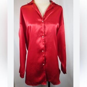 Victoriaâs Secret Womenâs Oversized Satin Night Shirt with Geometric Print Sz XS