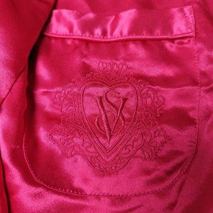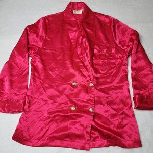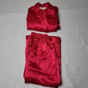 Vintage and Rare!! Victorias Secret Womens P (In the 90's size P means XS) Gold Label Satin Pajama Set Pink Top And Pants Crest