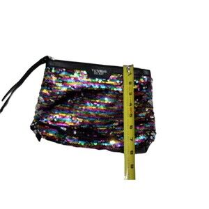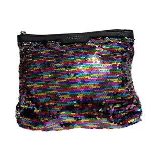 Victoria's Secret Womens Sequin Cosmetic Makeup Bag Clutch Rainbow Travel Pouch