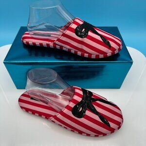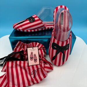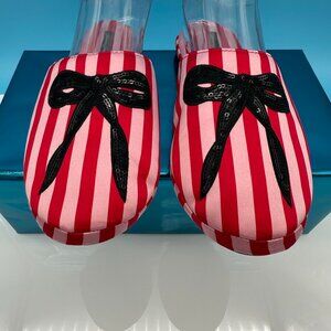 Victoria's Secret Women's Signature Satin Sequin Bow Closed Toe Slippers, Size Medium (7-8), Red/Pink Striped, Upper: 100% Polyester; Sole: Elastodiene, Style 411655-82U