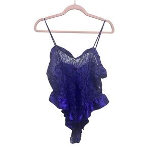 Victoria’s Secret Teddy Bodysuit Womens Size M Purple Ruffle Lace Gold Label Vintage Retro