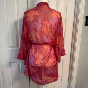 Victoria’s Secret Women’s Size OS Robe Chiffon Sheer Red Pink Floral Intimate