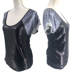 Victorias Secret Womens Size Small All-Over Sequin Baseball Tee Shirt Scoopneck