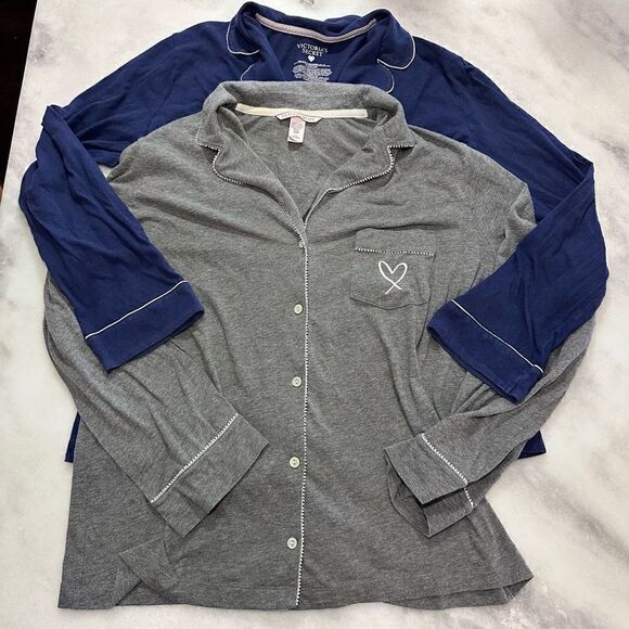 Victoria's Secret Womens Sleepwear Top Bundled Set Button Front Blue Gray L/M