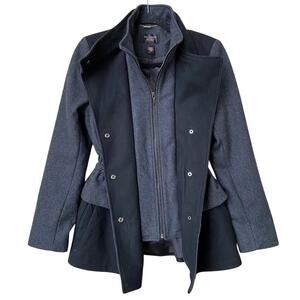 Victoria's Secret Womens Small Black Gray Full Zip Button Up Winter Coat Jacket