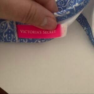 Victoria’s Secret Strapless Ruffle Bandeau Bikini Top Blue White 34C Push-Up