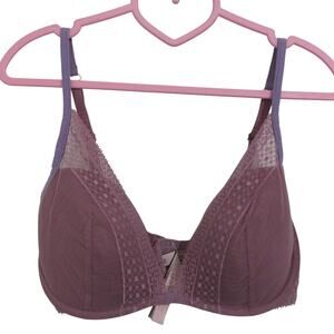 Victoria's Secret Womens Sz 34D Mauvy Purple Mesh Overlay Plunge Bra