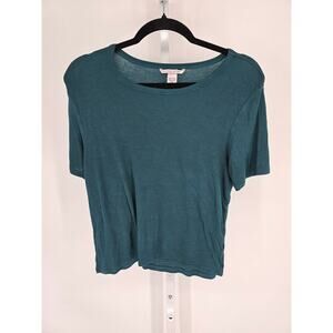 Victorias Secret Womens Sz L Pajama Set Shorts Shirt Dark Teal Blue