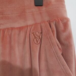 Victoria's Secret On Point velvet jogger pant sin pink salmon. Elastic waistband joggers with tie around waist and front pockets. Luxe velvety feel pants perfect for lounging, holiday vibes, or styling with a cropped top and sneakers.