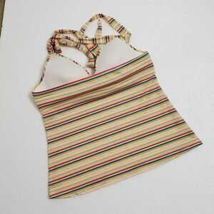 Victoria's Secret Womens Sz Small Tankini Top Stripes Gold Metalic Strip
