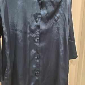 Vintage Victoria's Secret Oversized Satin Button Front Navy Blue Top Size XS