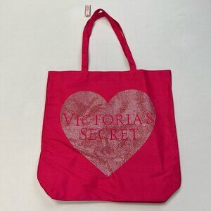 Victorias Secret Womens Tote Bag Magenta Textile Spellout Heart Sequins Huge New