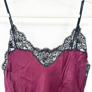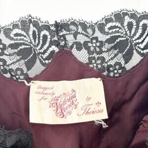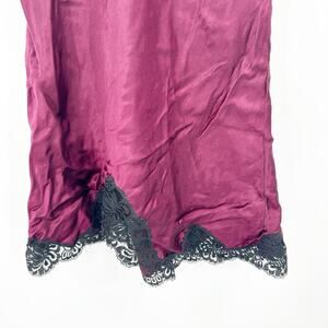 Victorias Secret Womens Vintage 70s Whimsigoth Silk Lace Babydoll Slip Dress in Burgundy and Black. Size small.
