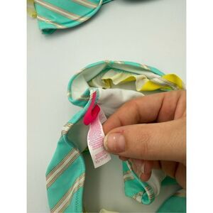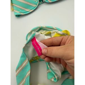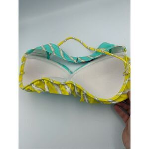 Victoria's Secret Womens Blue Metallic Striped Bandeau Top Padded Bikini Set Size 34DD XS
