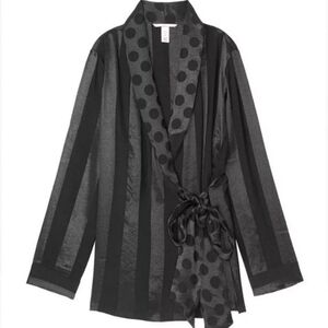 Victoria's Secret Wrap Tie Kimono Robe Striped Polka Dot Satin M/L