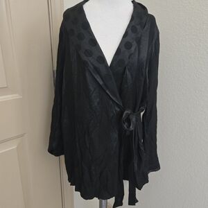 Victoria's Secret Wrap Tie Kimono Robe Striped Polka Dot Satin M/L. So fun! Polka Dot collar and belt pattern, the rest is stripes. Size Medium/Large. 58% viscose, 42% polyester for a super luxurious satin fabric feel. Measures approximately 23" wide back, measuring from underarm to underarm and 32" long measuring from back collar to hem.