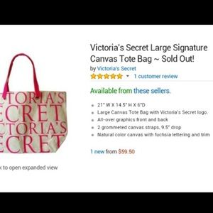 Victorias Secret XL VS Pink Signature Canvas Tote