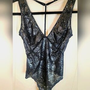 Victoria's Secret XS Strappy Lace Bodysuit Teddy Black Metallic Palm