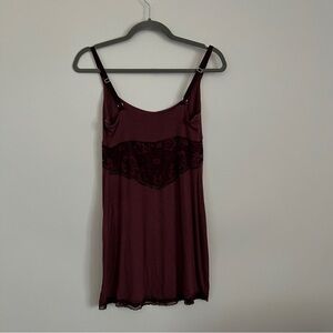 Victoria’s Secret Y2K Slip Dress Burgundy Lace Trim Coquette Mini
