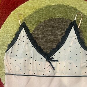 Victoria’s Secret Y2K Style Light Pink Black Polka Dot Lace Bow Cami Tank Top L