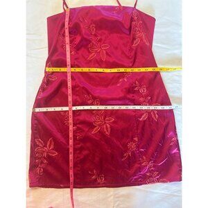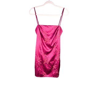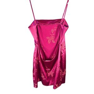 Victorias Secret Y2K Sz L Satin Slip Dress Fuscia Pink w Orange Floral Pattern