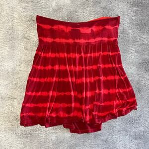 -Cute red tie-dye tube top with ruched front and rope tie detail. Stretchy fit with a soft flowy hem — easy to dress up or down for a fun summer or festival vibe.