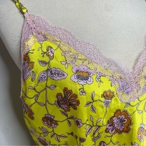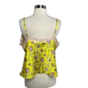 Victoria’s Secret Yellow Floral Satin Lace‑Trim Cami Tank — Y2K