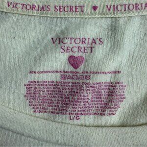 Details: From the 2014 Summer sleep collection. This short sleeve nightgown has a glitter graphic logo on the front that says "Summer Never Sleeps VS". Has a slightly lower hang in the back than the front. Curved hem, Rolled sleeve caps, round neckline.