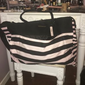 THISSS BAG. πππ brand new. never even opened! i have two of these bags, my mom gave me one and I bought one so I'm looking to sell one of them! This is by far the best tote/bag I've ever used from Victoria's secretπ I added pictures of the one I have and use everyday! obsessssed with this bag. It comes with a pocket on the front and a pretty large makeup bag. (I'm in love with the makeup bag too, soooo cute!) there's so much room in this bag! please let me know if you have questions ππ