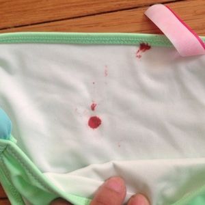 Good condition! There is a nail polish stain but it is inside the bathing suit so you can't see it