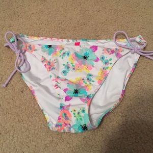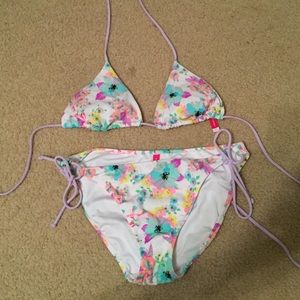 Victoria's Secret floral bikini. Top is a M and bottoms are a L! Not the same style as in the VS model picture just wanted to show a better picture of what the design looks like on :)