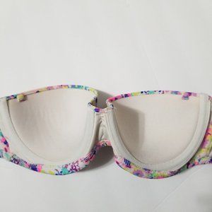 Victoria's Secret bikini top 32C strapless bandeau colorful floral ruched beach